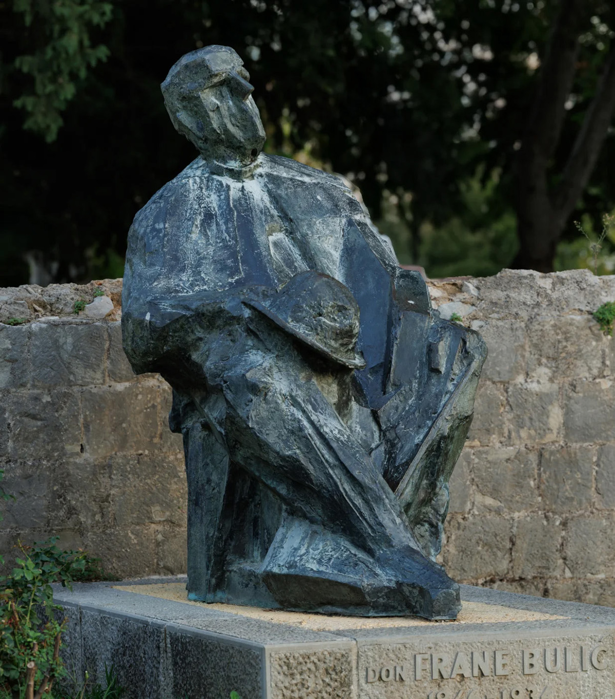 Vrhunac oblikovanja tijela konstruktivističkim postupkom svakako je njegov spomenik don Frani Buliću kojega je 1984. godine sirovim daskama oblikovao kao sjedeću formu. Kasnije dodavanje epiderme i lijevanje u broncu bilo je logičan korak za skulpturu koja stoji u vanjskom prostoru, ali ipak su na njoj ostali vidljivi uglati, kubistički elementi primarne forme. Oštar, pronicljiv i nepopustljiv pogled don Frane Bulića, velikog istraživača i čuvara naših starina, poručuje da se odmorio samo na trenutak, a da već u sljedećem ustaje i nastavlja svoj cjeloživotni projekt. Nekoliko aktova, koji su također oblikovani od dasaka kao samostojeće ili kao reljefne forme na zidu, zadržalo je izvornu materijalnost konstrukcije koja (p)ostaje i nositelj estetskih sastavnica djela.