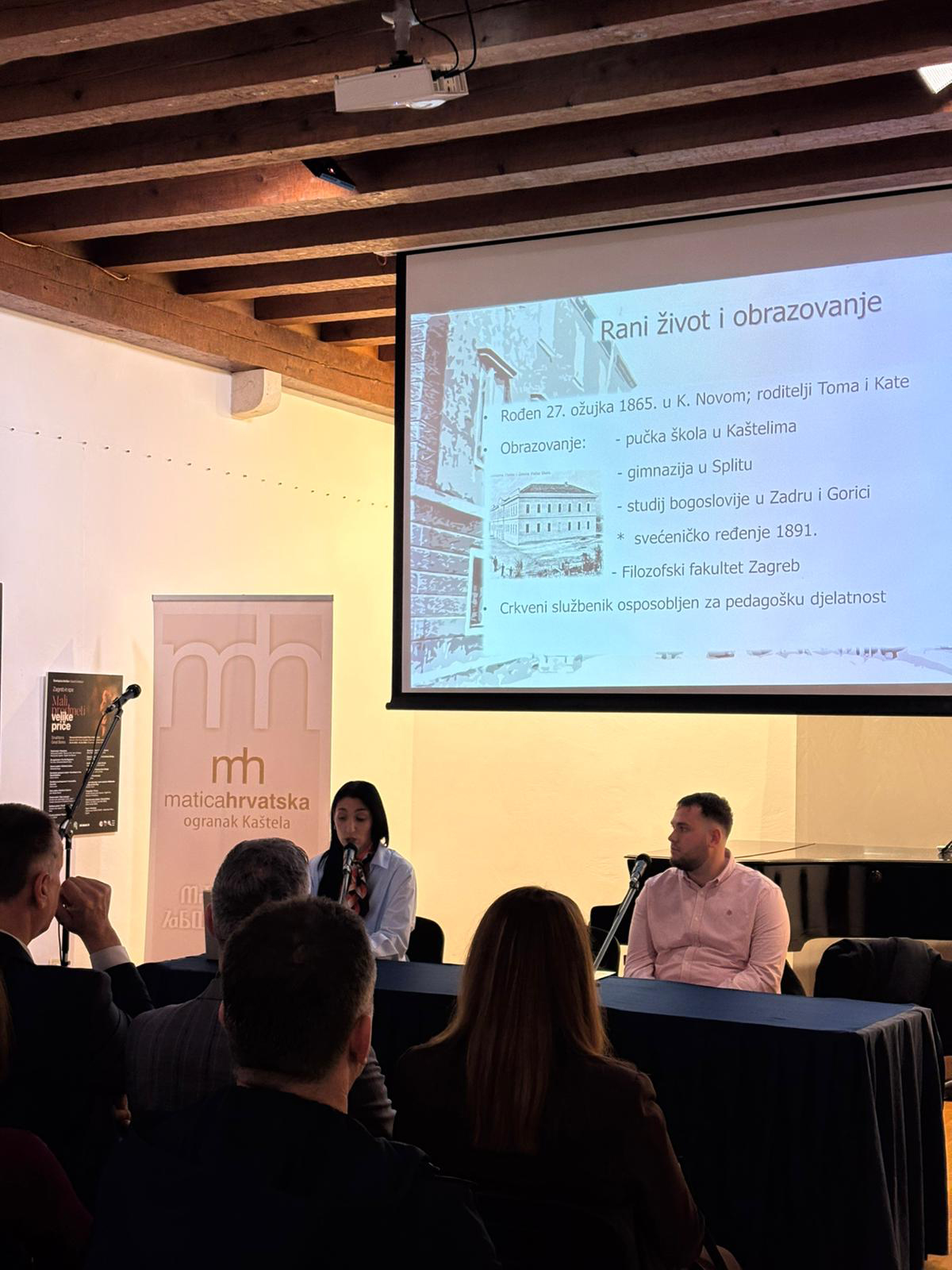 Na početku programa okupljene je pozdravio predsjednik OMH u Kaštelima Mili Novak, istaknuvši raznolikost i kontinuitet rada Ogranka, koji će obogatiti i ovaj novi projekt čiji je cilj istražiti i predstaviti život i djelo istaknutih osoba koje su oblikovale znanstveni, kulturni, umjetnički, duhovni i sportski identitet Kaštela. Naglasio je kako rezultati istraživanja neće ostati samo u formi predavanja, nego će se trajno bilježiti u zbornicima radova koji će biti dostupni školama, knjižnicama i kulturnim institucijama.