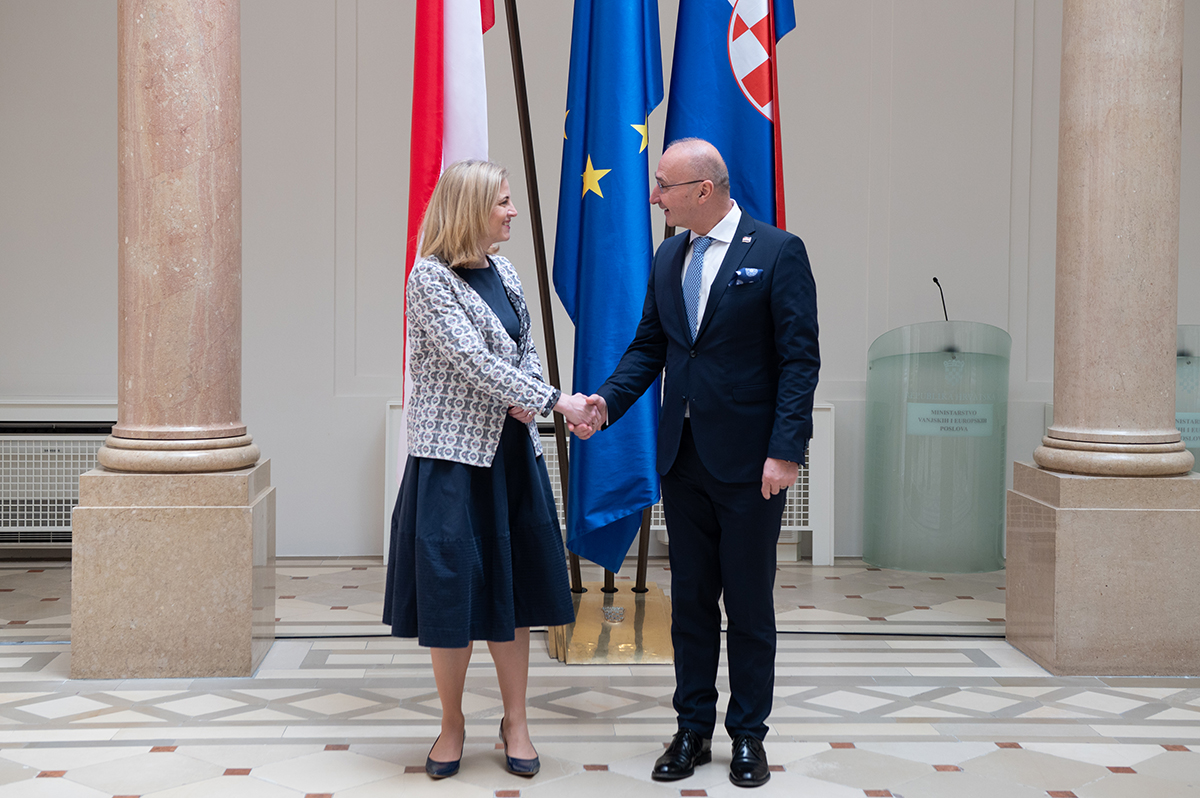 Austrijska šefica diplomacije Beate Meinl Reisinger i ministar vanjskih poslova Gordan Grlić Radman / Snimio Luka Antunac / PIXSELL