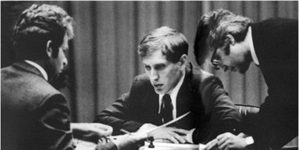 Na fotografiji iz Reykjavika 1972. Boris Spaski, Bobby Fischer i Lothar Schmid