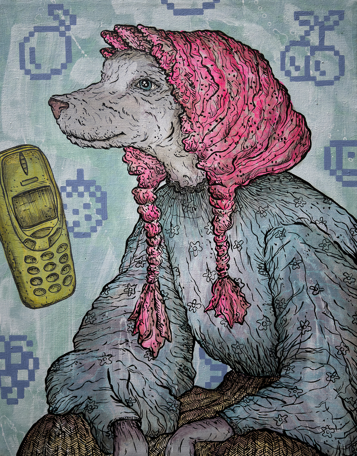 Hibridni protagonisti, okarakterizirani organskom materijom, uspostavljaju osjećaj povezanosti s prirodnim, zemaljskim svijetom. Njima kontriraju digitalni slojevi slike, vidljivi u uvođenju pixel-arta i ASCII-art elemenata. Fragmentirani digitalni znakovi nisu samo estetski dodaci, nego simboli saveznika, malih rituala, misli i imaginacija koje pojedinca vraćaju sebi. Njihova svrha pritom nije eskapističke prirode. Oni funkcioniraju kao oblik prilagodbe, odnosno zaštitni mikrosvjetovi uz čiju pomoć čovjek podnosi pritiske svakodnevice.