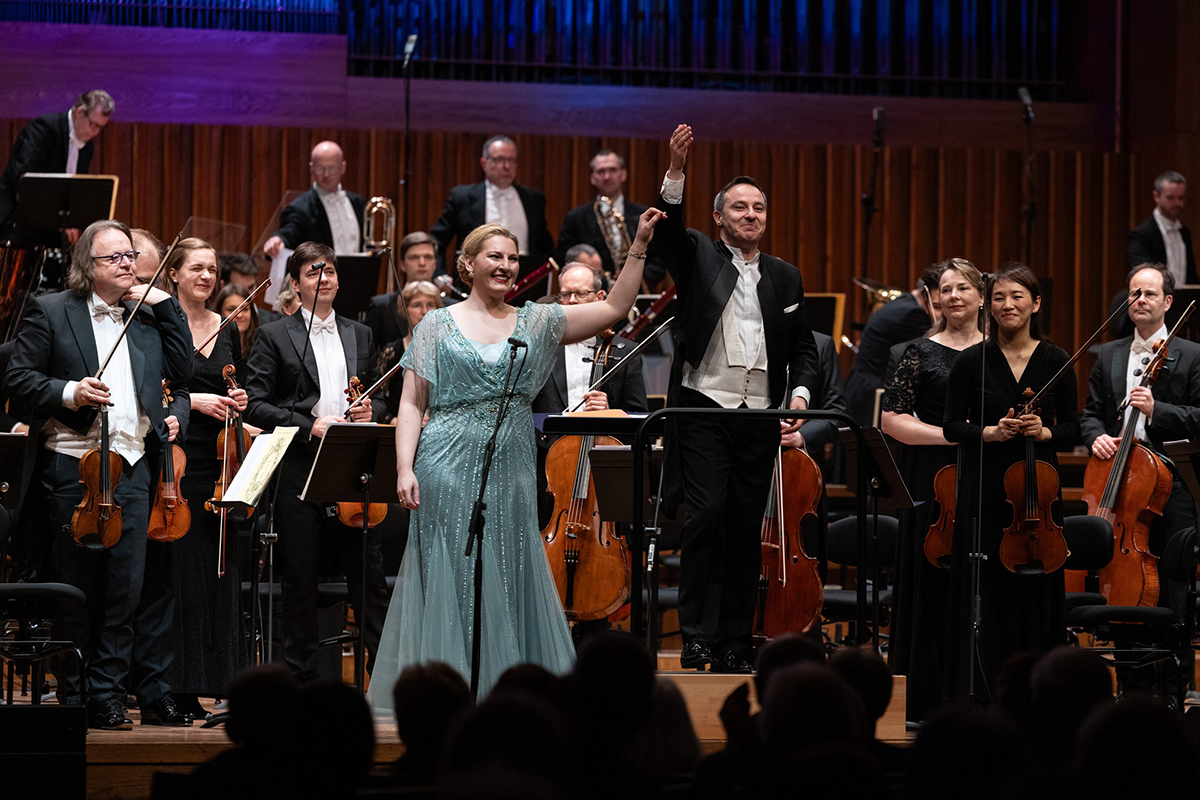 Koncertni majstor Državne kapele iz Weimara Gernot Süßmuth (prvi slijeva), mezzosopranistica Annika Schlicht i maestro Ivan Repušić u Koncertnoj dvorani Vatroslava Lisinskog / Izvor KD Lisinski