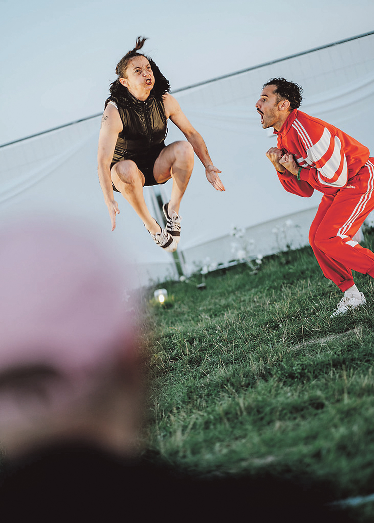 Ova predstava govori i o tome kako se iza vizualno impresivnih i spektakularnih nastupa pjevačica i pjevača, akrobatkinja i akrobata skriva mnogo suza prolivenih tijekom mukotrpnih pokusa punih padova, ranjavanja, strahova i nesigurnosti, ali i nepokolebljive volje za uspjehom. U tom vještom klaunsko-akrobatskom duetu Nanda je ambiciozniji dio umjetničkog para, dojmljiva u plesnom pokretu, pokretačka sila koja unatoč svim preprekama i napornim zadacima ne želi odustati od zacrtanog cilja. Federico je infantilniji, skloniji igri, čitanju priča, sviranju plastičnih dječjih klavijatura. On nam jasno daje do znanja da nije nimalo lako držati partnericu u zraku, a ona pokazuje kako je silno teško pjevati i u isto vrijeme raditi akrobacije. Iako njegov lik sve radi protiv svoje volje, Federicove akrobacije, posebice kolutovi, bili su uistinu fascinantni.