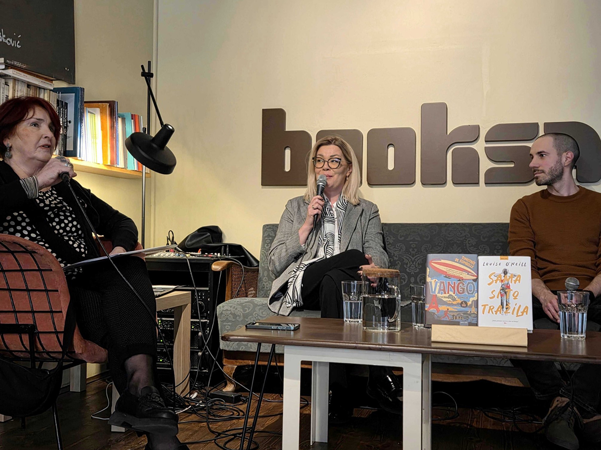 Glavna urednica nakladničke kuće Hena com Nermina Husković te prevoditelji Maja Ručević i Matija Pospiš