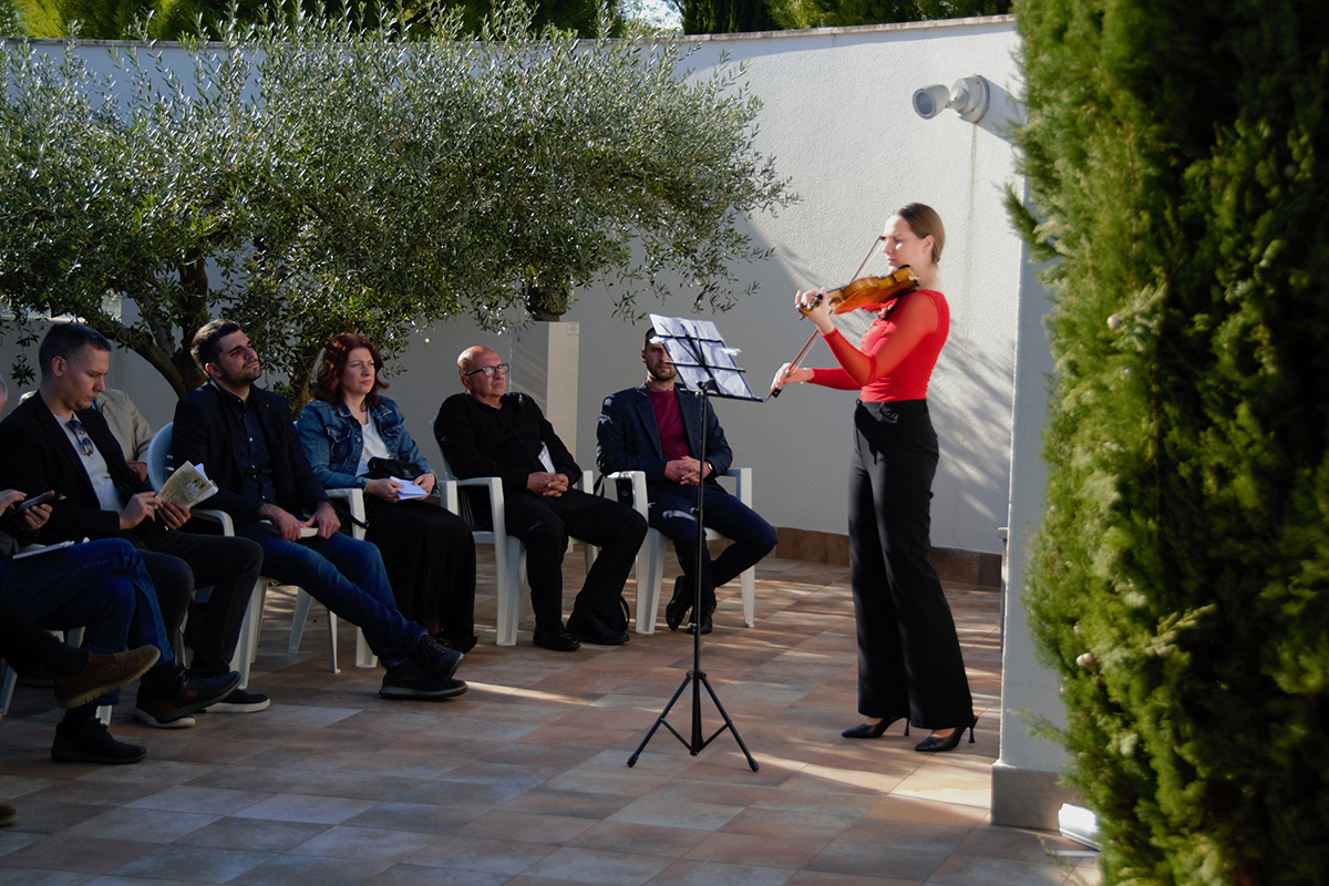 Okruženi skulpturama, slikama i mediteranskim raslinjem, uz zvukove prirode i zalazak sunca, okupljeni su uživali svim čulima u ugodnoj i opuštenoj atmosferi.
