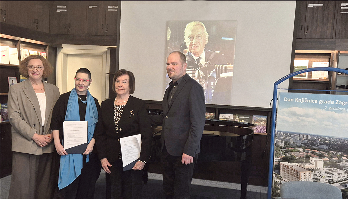 Pročelnica Emina Višnić, ravnateljica Sunčica Ostoić, donatorica Naima Balić i dogradonačelnik Luka Korlaet / Izvor Knjižnice grada Zagreba