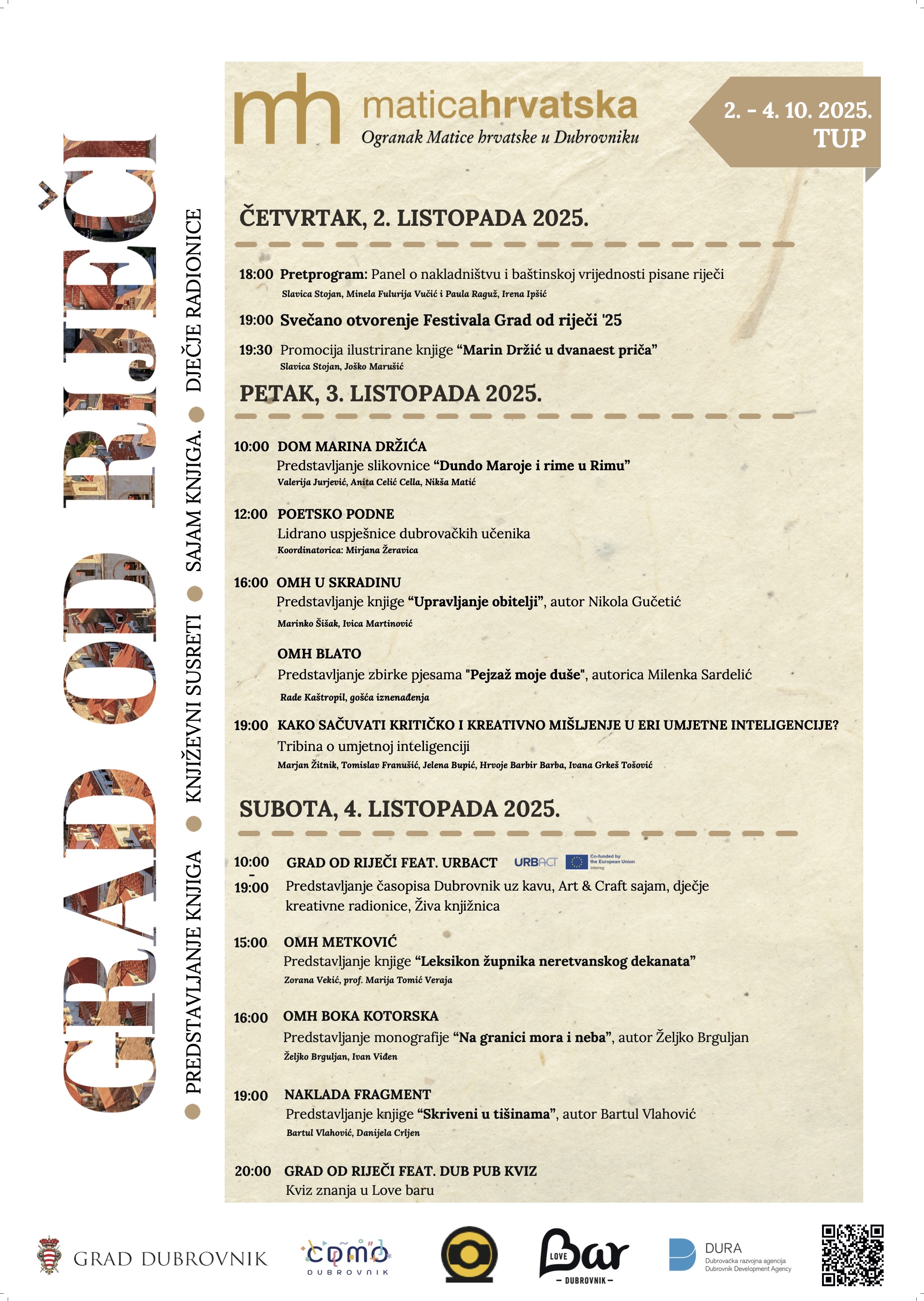 Od četvrtka 2. do subote 4. listopada 2025. godine na više lokacija. Detalji u programu.