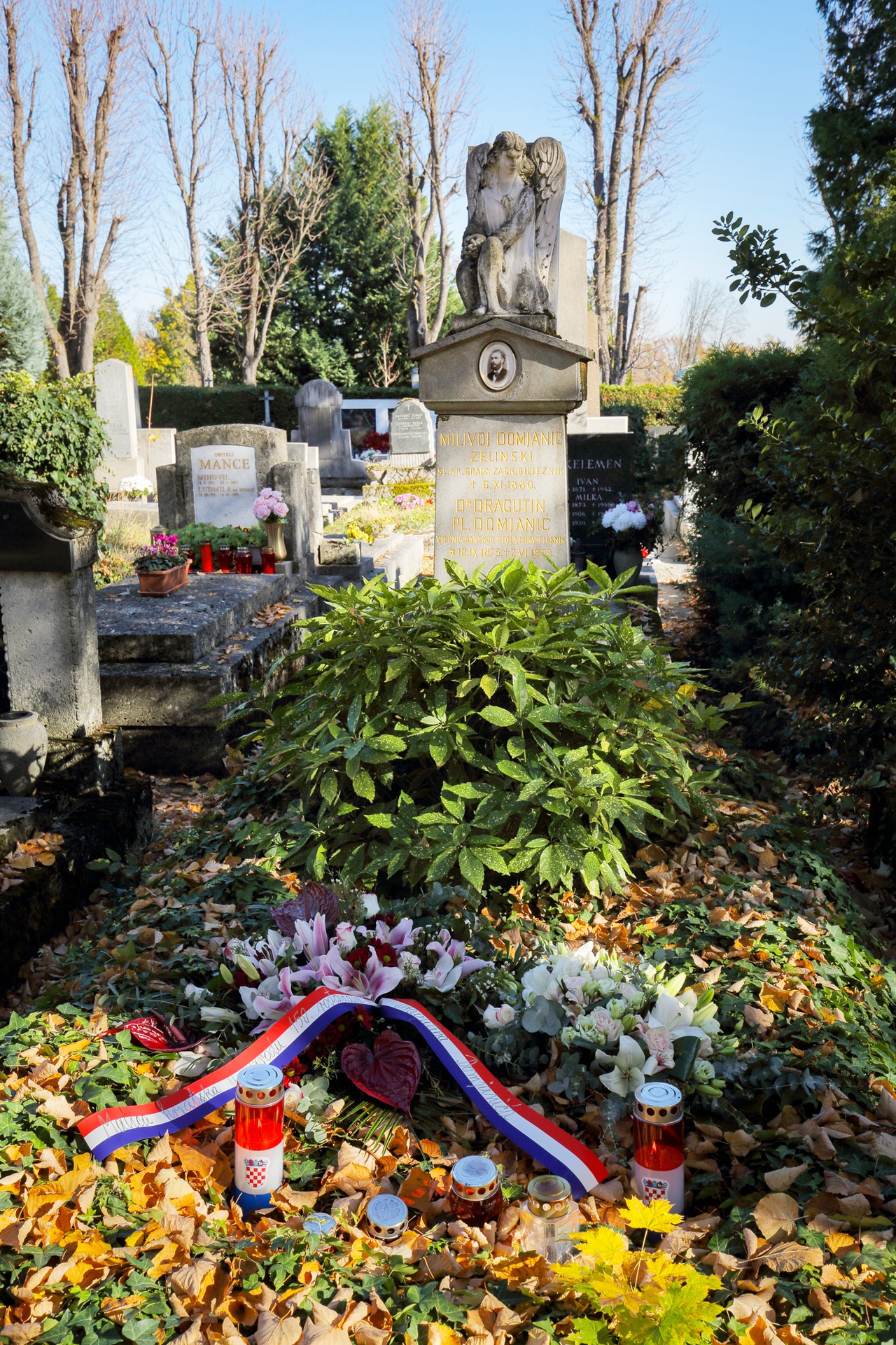 Polaganje cvijeća na Mirogoju na grob Dragutinu Domjaniću
