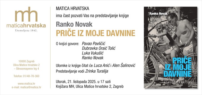 Ulomke iz knjige čitat će Luca Anić i Alen Šalinović