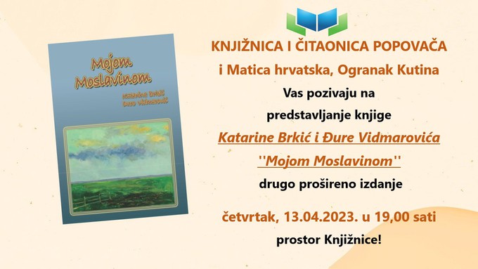 Četvrtak 13. travnja 2023. u 19:00 sati. Prostor Knjižnice i čitaonice Popovača