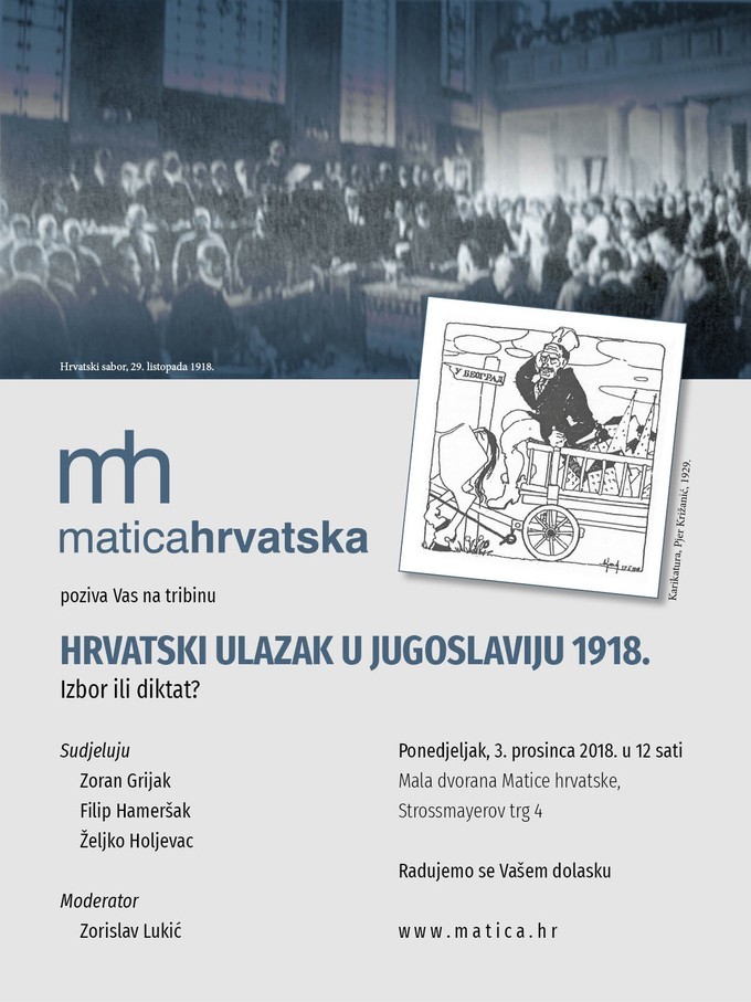 Tribina HRVATSKI ULAZAK U JUGOSLAVIJU 1918. - izbor ili diktat?