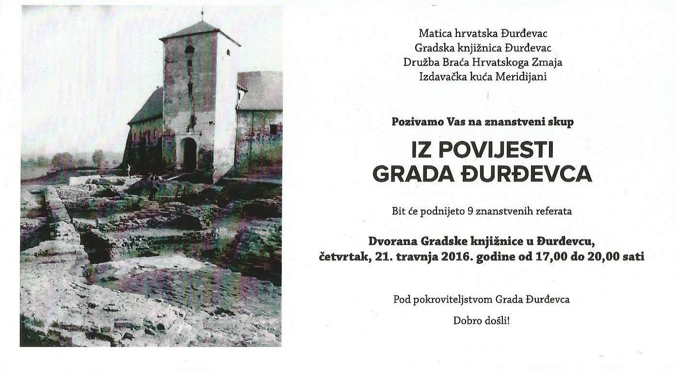 Četvrtak, 21. travnja 2016. u 17 sati u Gradskoj knjižnici u Đurđevcu